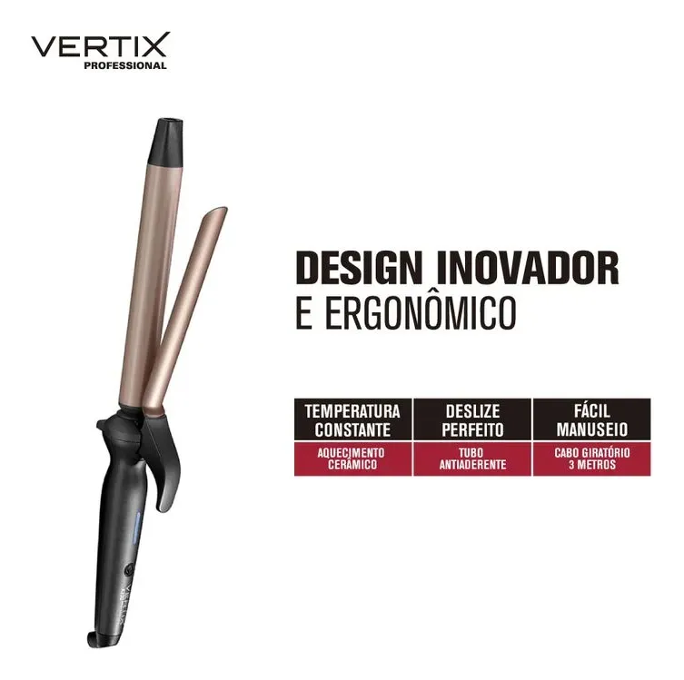 O modelador 25 mm da Vertix conta com aquecimento cerâmico que mantém a temperatura constante por todo o manuseio.