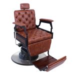 Acionamento por alavanca em aço maciço usinado e cromado; Cabeçote com ajuste de altura; Assento e encosto em madeira laminada; Espuma Confort; Revestimento em tecido sintético; Opção com ou sem capitonê; Apoios de braços estofados; Base hidráulica; Base Taça cromada.