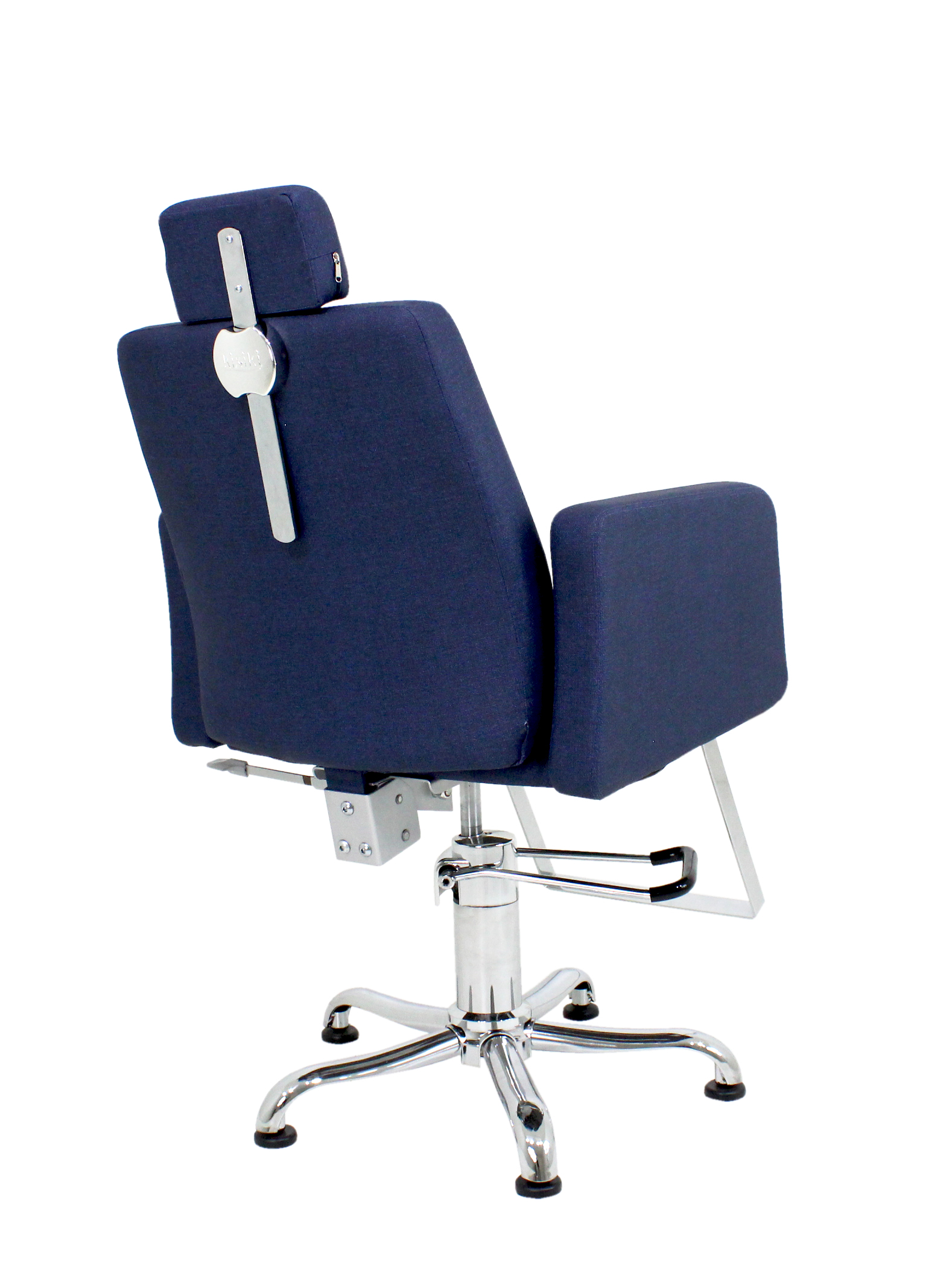 Braços com design exclusivo. Assento e Encosto anatômicos. Espuma injetada – Costura dupla. Apoio de pé em aço cromado