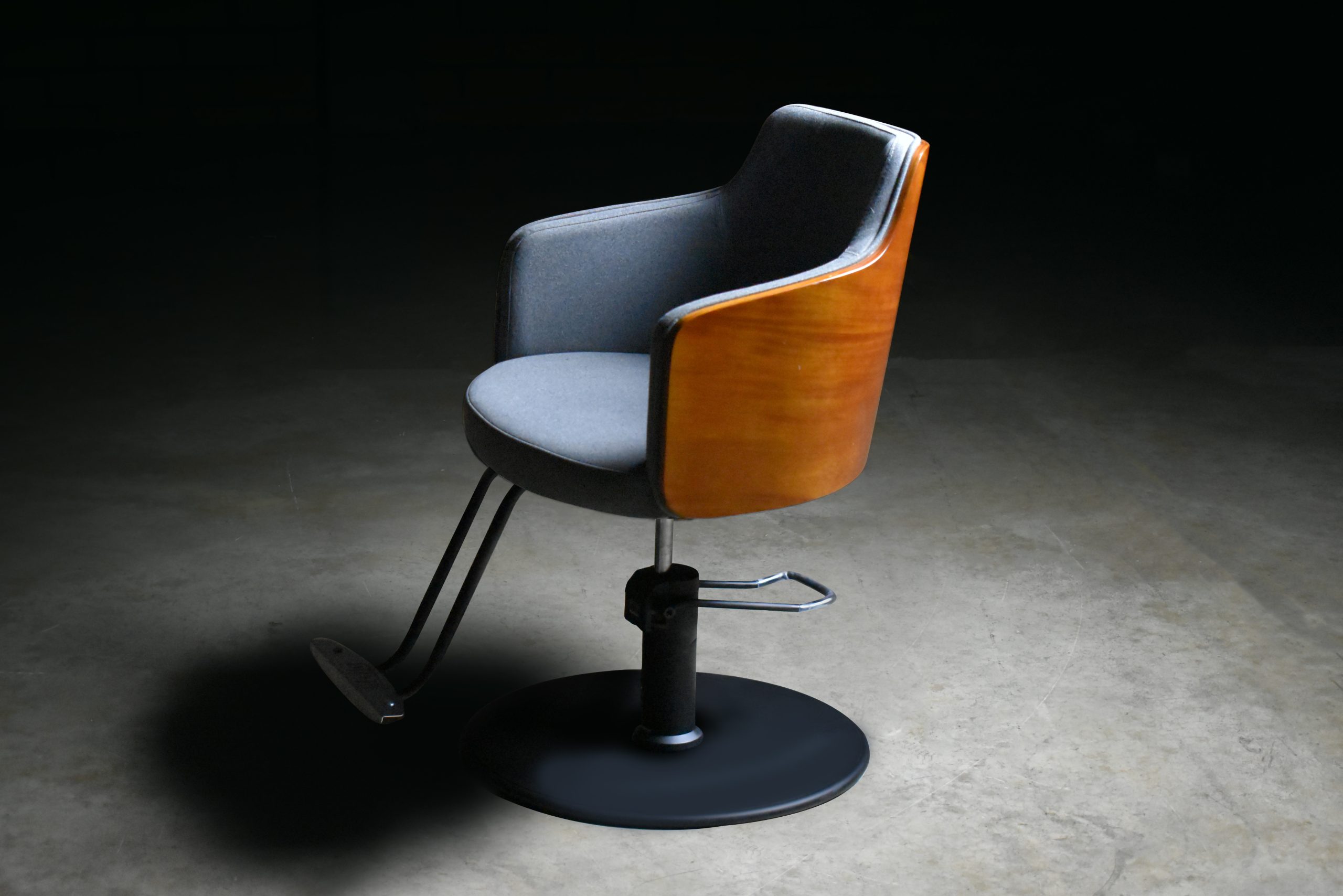 O design arredondado da cadeira Nature da Kixiki Móveis traz o conforto necessário para procedimentos de salão como corte, escova, colorimetria e mega hair.