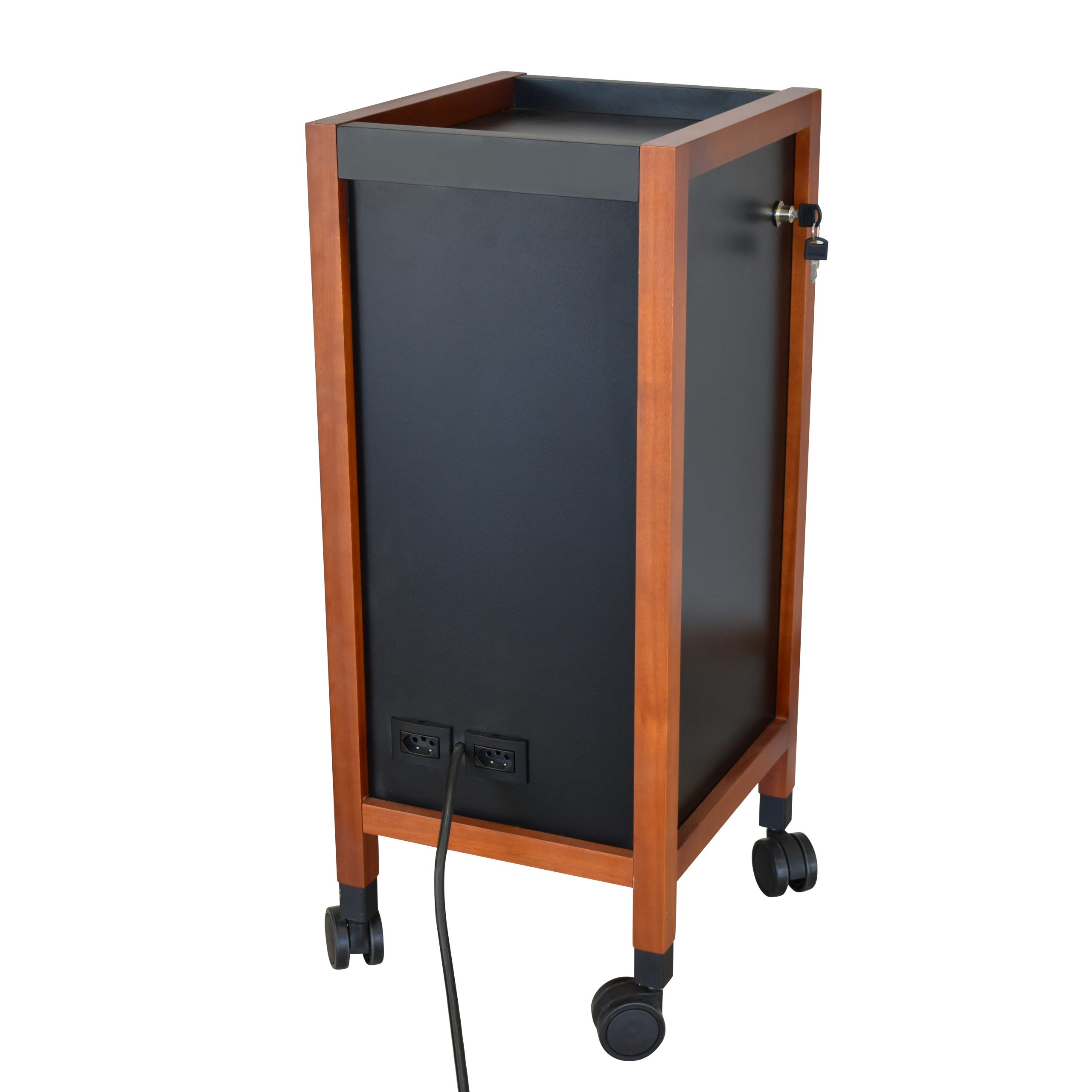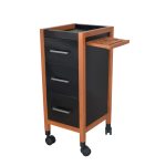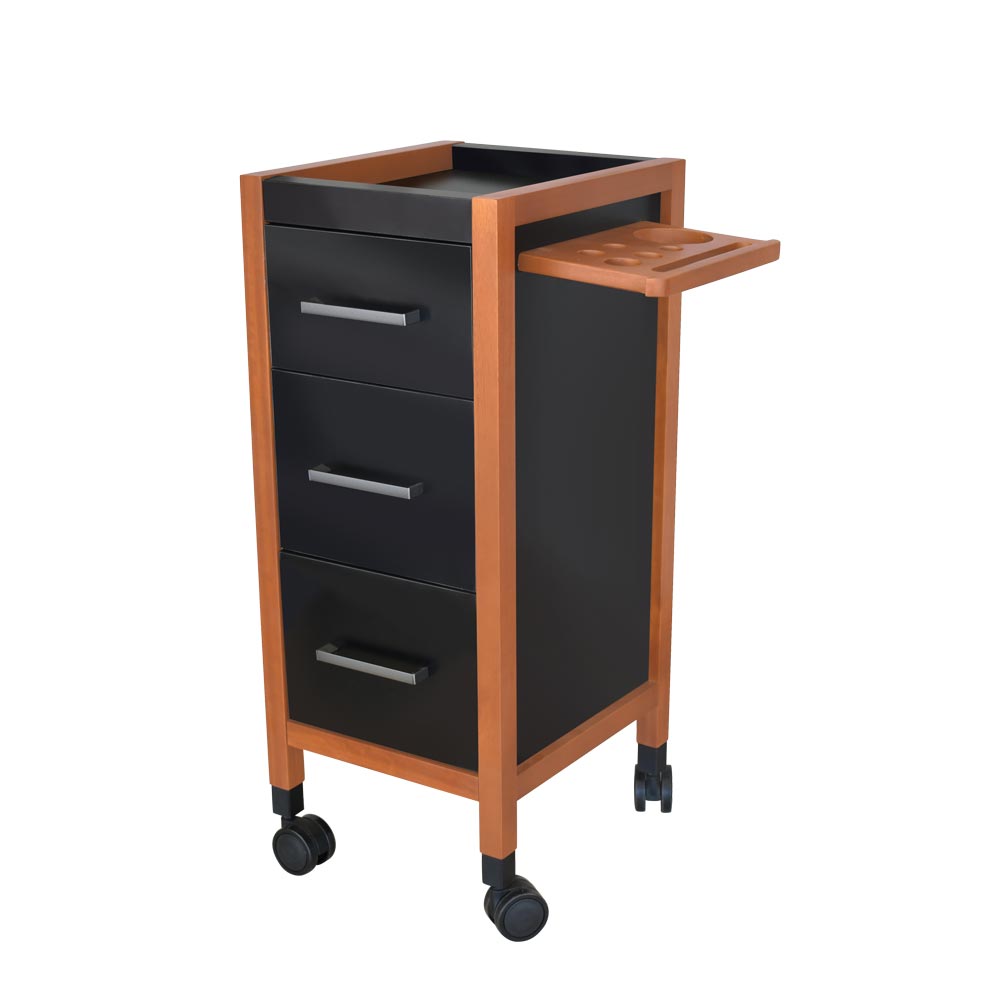 Carrinho auxiliar com estrutura em madeira maciça (de reflorestamento), gavetas em MDF, trilho telescópico, suporte para secador e outros utensílios. Tudo ao alcance das suas mãos.