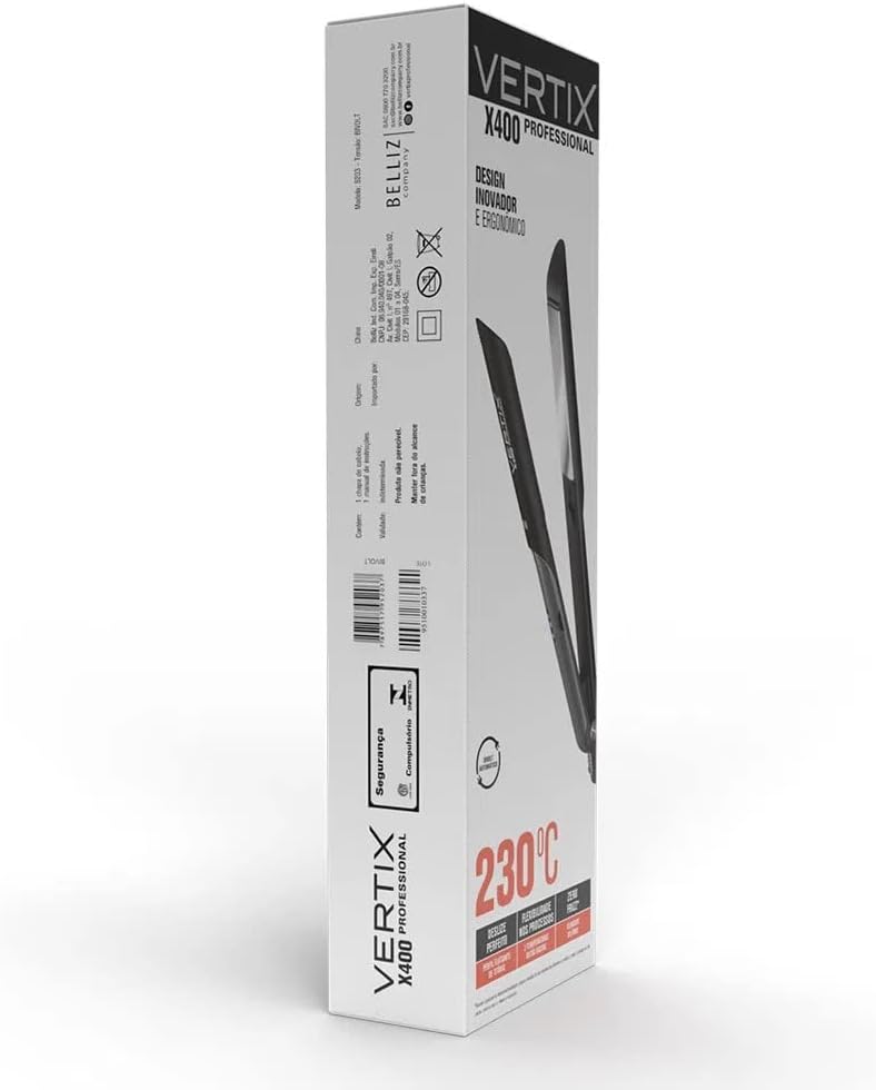 • Design inovador e ergonômico, Perfil flutuante de titânio, deslize perfeito, Botão de seleção 2 temperaturas, flexibilidade nos processos, Temperatura de 210° e 230°