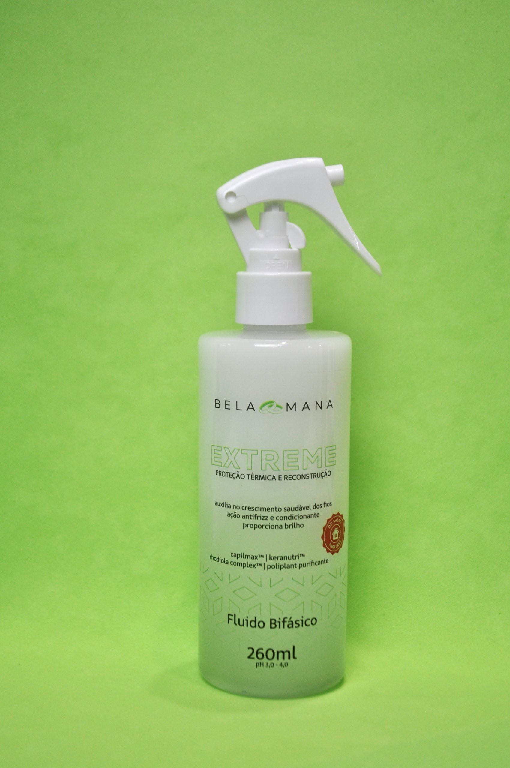 O Fluido Bifásico Extreme da Bela Mana é um restaurador capilar que fortalece e auxilia no crescimento saudável dos