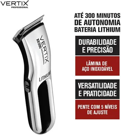 A Máquina de Acabamento Profissional Sem Cabo X8300 Vertix é a ferramenta ideal para profissionais que buscam precisão e praticidade na finalização dos cortes de cabelo. Com uma autonomia de até 300 minutos, você pode trabalhar com tranquilidade e eficiência,